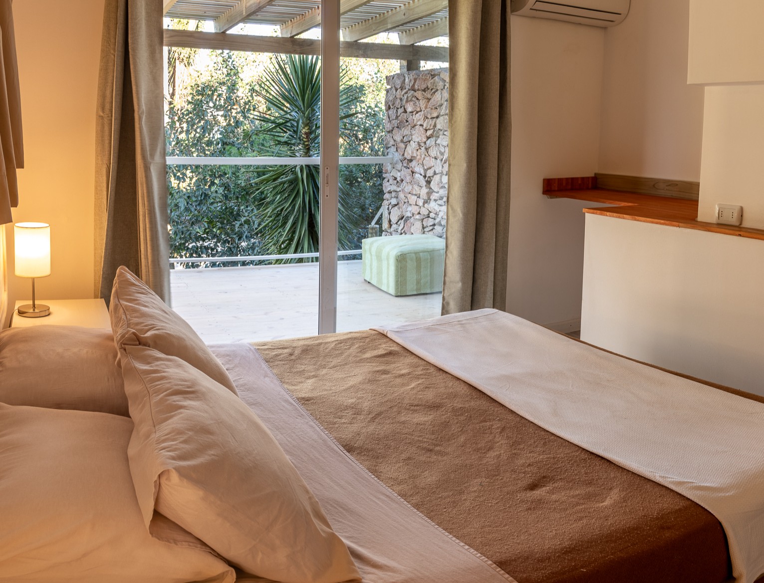 Apart Confort de dos dormitorios totalmente equipados, dormitorio principal con sommier matrimonial y amplia terraza deck con vistas, ambos con aire acondicionado, baño completo con panel de ducha hidro, cocina completa, fondo individual con parrillero.