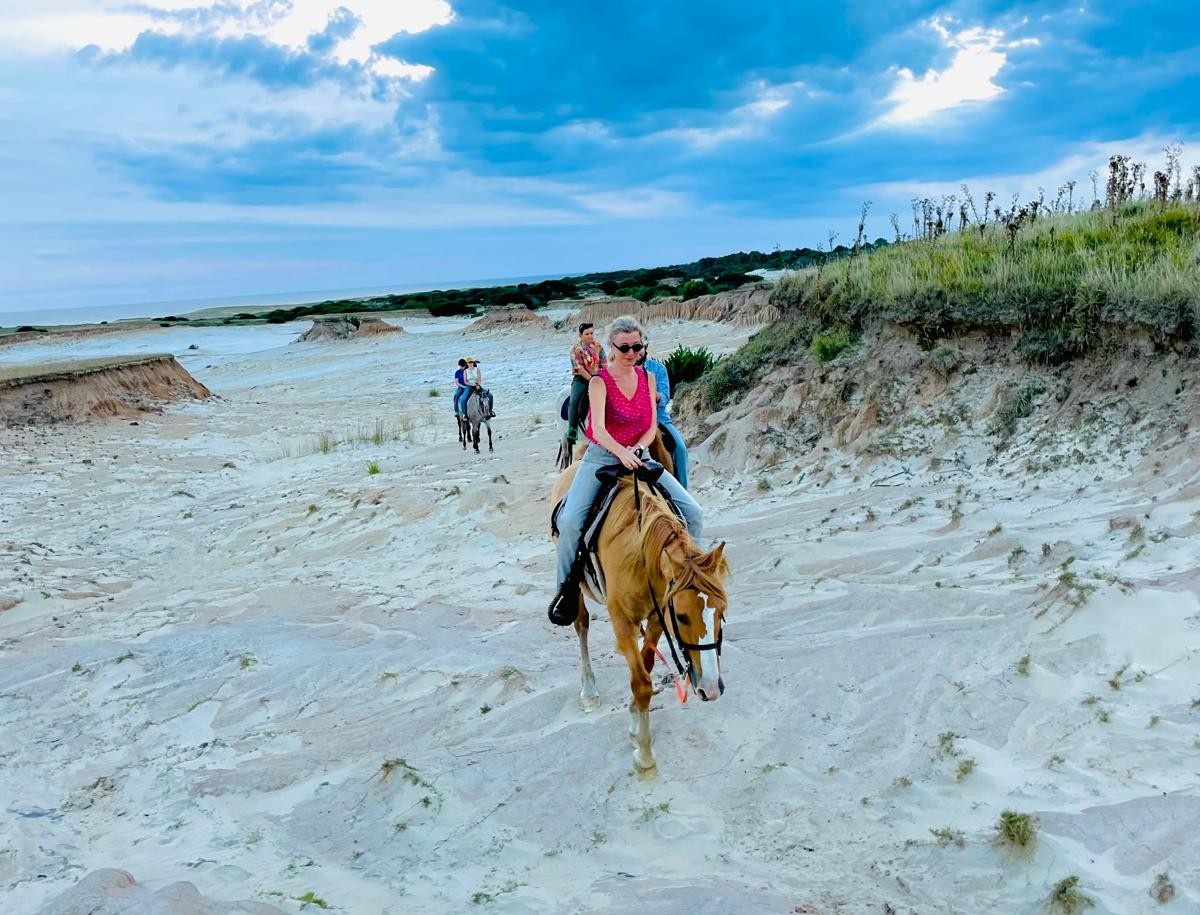 La experiencia incluye la popular "Cabalgata Océano y Cárcavas Milenarias," en la que se recorre campo natural y cárcavas  milenarias conocidas también el "Valle de la Luna," ideal para quienes buscan una inmersión en paisajes únicos.